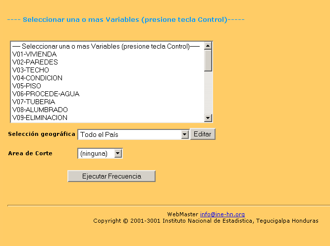 En esta parte usted podrá acceder a cada una de las variables existentes en la base de datos para obtener distribuciones simples a nivel de viviendas,